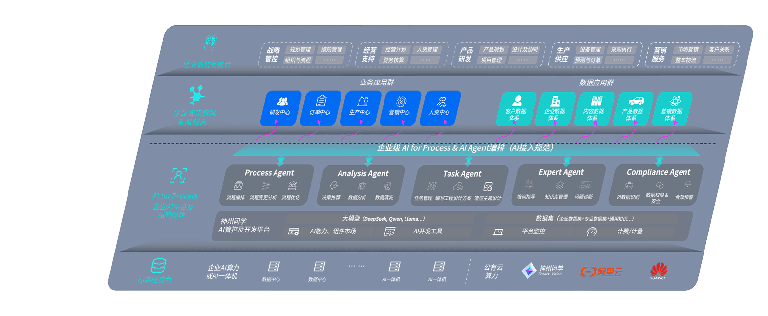 壹号娱乐问学智车解决方案是一套基于AI技术的汽车行业智能化系统,,覆盖从底层算力到顶层AI应用的全栈方案。。方案由算力层、、、、模型层和应用层组成:算力层,,方案支持多种一体机配置,,,具备云端灵活部署、、、多云适配以及动态优化计算资源的能力;模型层,,,壹号娱乐问学平台版提供了企业级AI应用一站式构建与管理平台,,,支持基于后训练强化技术的汽车企业专属模型的训练、、评测和运营;应用层,,,壹号娱乐问学DeepSeek版提供包括超级员工、、、、智能招采、、智能营销、、智能客服、、、、AI for BI等一系列解决方案,,,,可助力汽车行业实现数字化转型,,,,让管理更智能、、、响应更敏捷。。