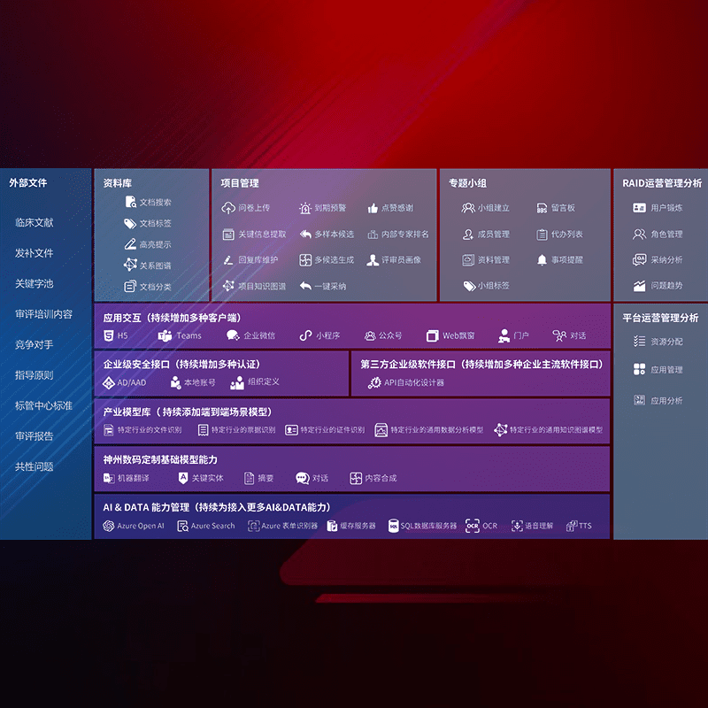 医疗器械产品上市前,,,,要熟悉严格与繁复评审标准,,,,整理分析监管机构指导文件中的海量信息。。。企业急需一个智能化解决方案,,,提升知识管理效率,,提高评审通过率,,,以提升其市场竞争力。。